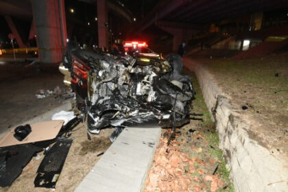 Um Porsche despencou da Banpo Bridge, no distrito de Yongsan, centro de Seul, nesta quarta-feira (25), por volta das 21h30 (KST), após romper a barreira de proteção da via elevada e cair sobre a pi...