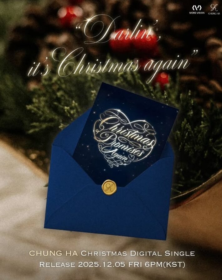 Chung Ha prepara o retorno ao espírito natalino com “Christmas Promises: Again”, especial que será lançado em 5 de dezembro de 2025. A artista revelou o lançamento nas redes sociais e apresentou o trabalho como uma continuação de “Christmas Promises”, divulgado em 2024.