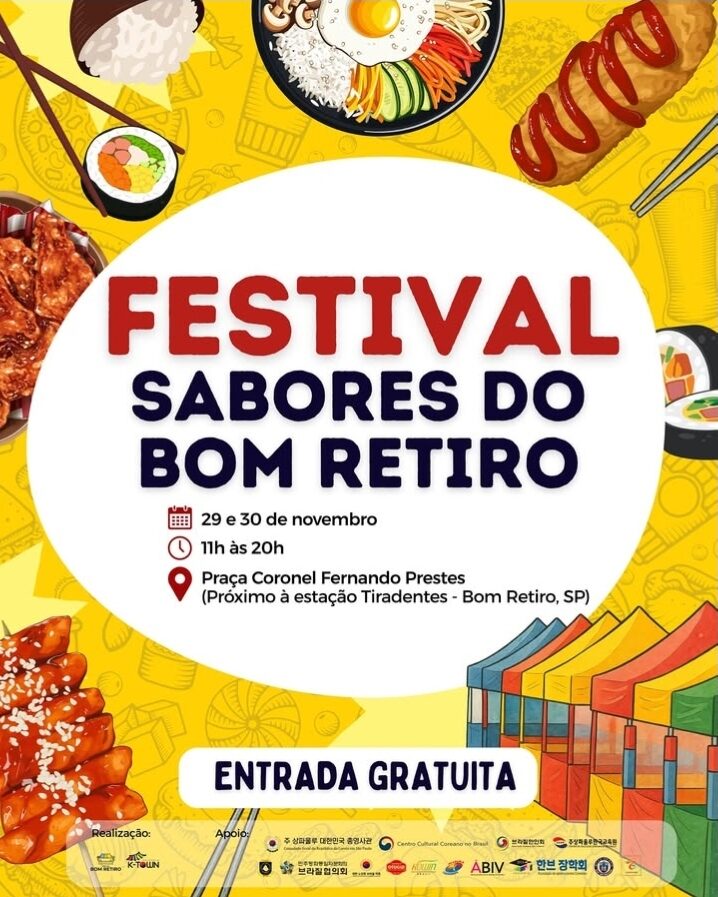 O bairro do Bom Retiro, conhecido por sua forte presença cultural, recebe nos dias 29 e 30 de novembro o Festival Sabores do Bom Retiro, organizado pela Feira do Bom Retiro, com apoio do KOFF – Korean Film Festival e do coletivo KTown.