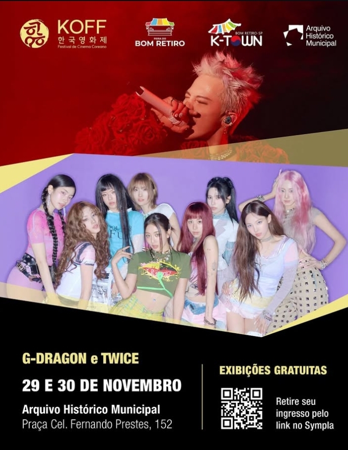 No dia 29, às 18h, será exibido o filme “G-DRAGON: ÜBERMENSCH / A Lenda Retorna. O Palco Estremece”, que registra a estética e a força performática do artista em seu retorno após oito anos, destacando sua fase Übermensch. Já no dia 30, às 16h, o público poderá assistir a “TWICE: ONE IN A MILLION – 10 anos”, sessão comemorativa dedicada à trajetória do grupo e à relação com a base de fãs ONCE.