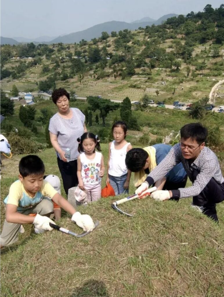 Outro costume importante é o Seongmyo, visita aos túmulos familiares, onde se realiza o Beolcho, a limpeza das lápides e arredores. O gesto simboliza cuidado, reverência e renovação.