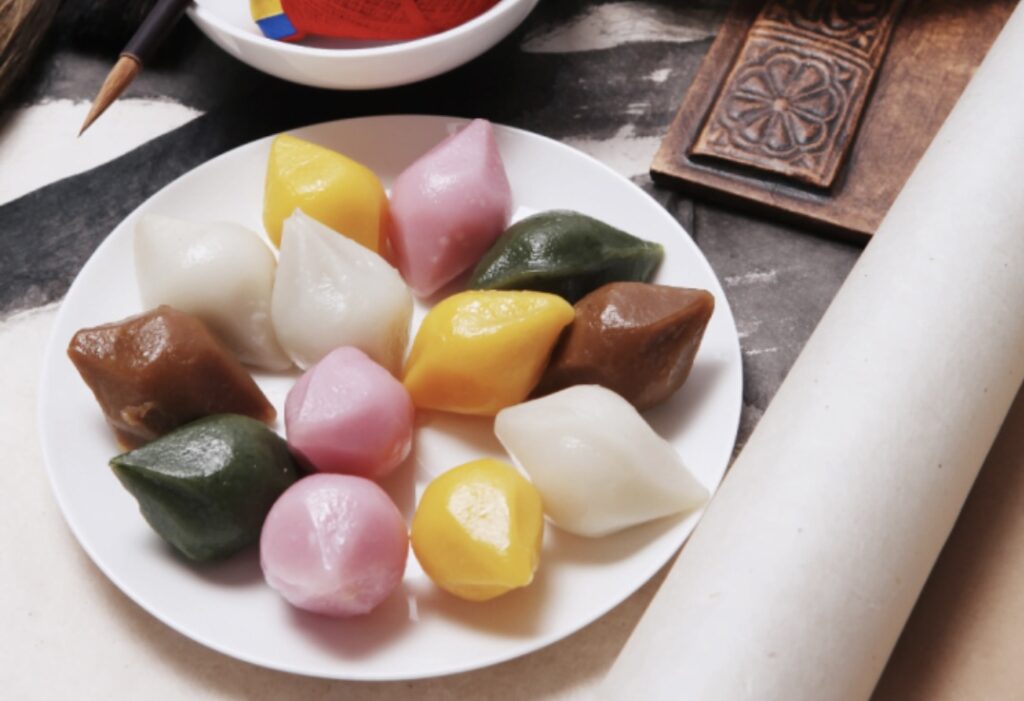 Após as homenagens, as famílias compartilham uma grande refeição, com destaque para o songpyeon, um bolinho de arroz em formato de meia-lua, cozido no vapor com agulhas de pinheiro. O aroma do pinheiro simboliza pureza, e acredita-se que preparar o songpyeon com carinho traz sorte e prosperidade. Tradicionalmente, as mulheres da família são as responsáveis por fazê-lo.